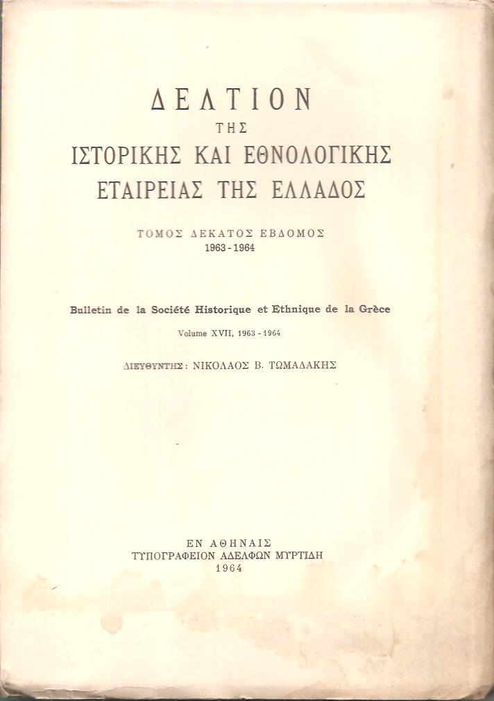 ΔΕΛΤΙΟΝ ΤΗΣ ΙΣΤΟΡΙΚΗΣ ΚΑΙ ΕΘΝΟΛΟΓΙΚΗΣ ΕΤΑΙΡΙΑΣ ΤΗΣ ΕΛΛΑΔΟΣ