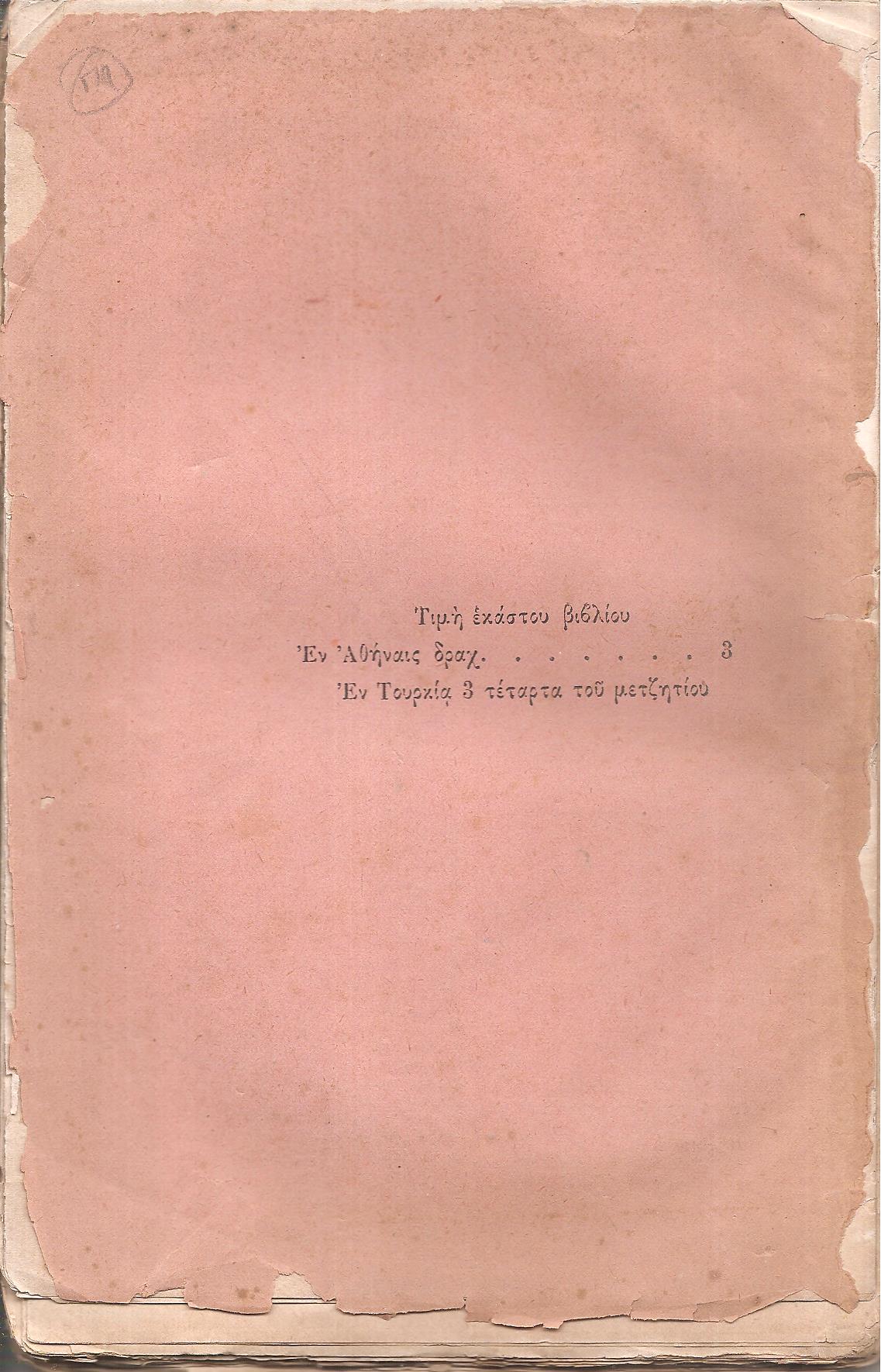 ΜΟΥΣΑΙΟΣ Μ.Ι., Βατταρισμοί ήτοι Λεξιλόγιον της Λειβησιανής διαλέκτου μετ’ εγχωρίων παροιμιών εν τέλει. Εν Αθήναις, ΕΚ ΤΟΥ ΤΥΠΟΓΡΑΦΕΙΟΥ ΠΑΡΝΑΣΣΟΥ, 1884, 8ο, σελ. κστ΄+174+1χ.α.+1λ (λείπει μεγάλο κομμάτι από το εμπροσθόφυλλο, άκοπα φύλλα,  ΗΛΙΟΥ-ΠΟΛΕΜΗ αρ. 1884.97)