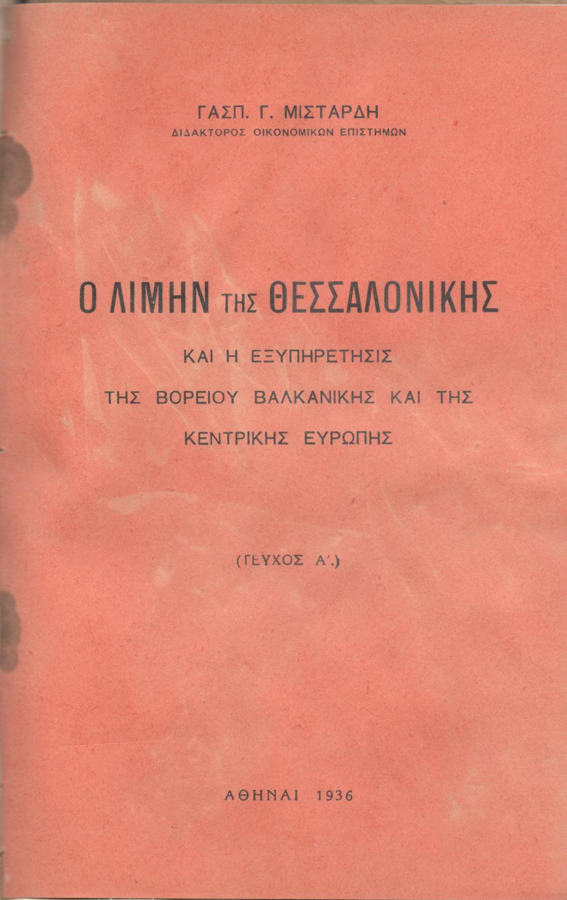 ΜΙΣΤΑΡΔΗΣ ΓΑΣΠΑΡΗΣ Γ., Η ΟΙΚΟΝΟΜΙΑ ΤΗΣ ΜΑΚΕΔΟΝΙΑΣ, ΜΕΡΟΣ ΠΡΩΤΟΝ. ΑΘΗΝΑΙ 1928, 24x17, σελ.160 [μαζί δεμ.] του ιδίου, Ο ΛΙΜΗΝ ΤΗΣ ΘΕΣΣΑΛΟΝΙΚΗΣ ΚΑΙ Η ΕΞΥΠΗΡΕΤΗΣΙΣ ΤΗΣ ΒΟΡΕΙΟΥ ΒΑΛΚΑΝΙΚΗΣ ΚΑΙ ΤΗΣ ΚΕΝΤΡΙΚΗΣ ΕΥΡΩΠΗΣ, ΤΕΥΧΟΣ Α΄. ΑΘΗΝΑΙ 1936, 24x17, σελ. 48 (ιδιωτική βιβλιοδεσία)